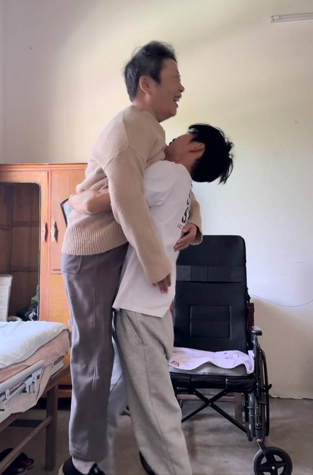 郭求生抱母亲坐轮椅