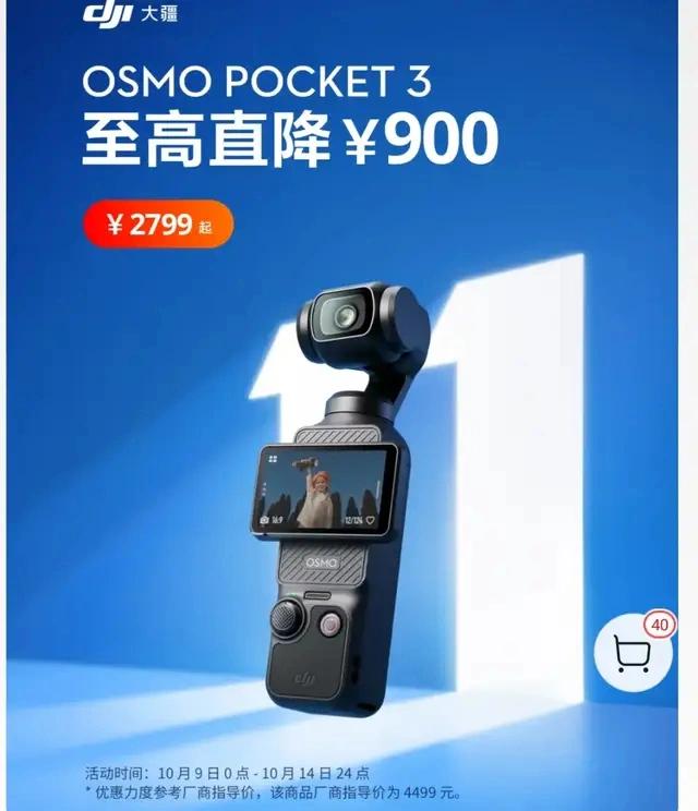 其中,户外电源Power1000V2直降900元,Power500直降500元,云台相机Pocket3最高降价900元,运动相机Action4最高降价1129元,手机稳定器Mobile7P降价200元,扫地机器人ROMO最高降价300元,无线麦克风MIC2最高降价800元,Mini4K航拍无人机最高降价1300元,航拍机Mini4PRO最高降价1478元。该店铺显示,大疆双11活动10月9日开始,以上优惠的期限是10月9日0点~10月14日24点。