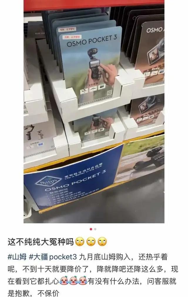 另外,一位网友告诉记者,她是10月3日原价购买的Pocket3相机,得知降价的消息后心情低落,“早知道先不买了。”