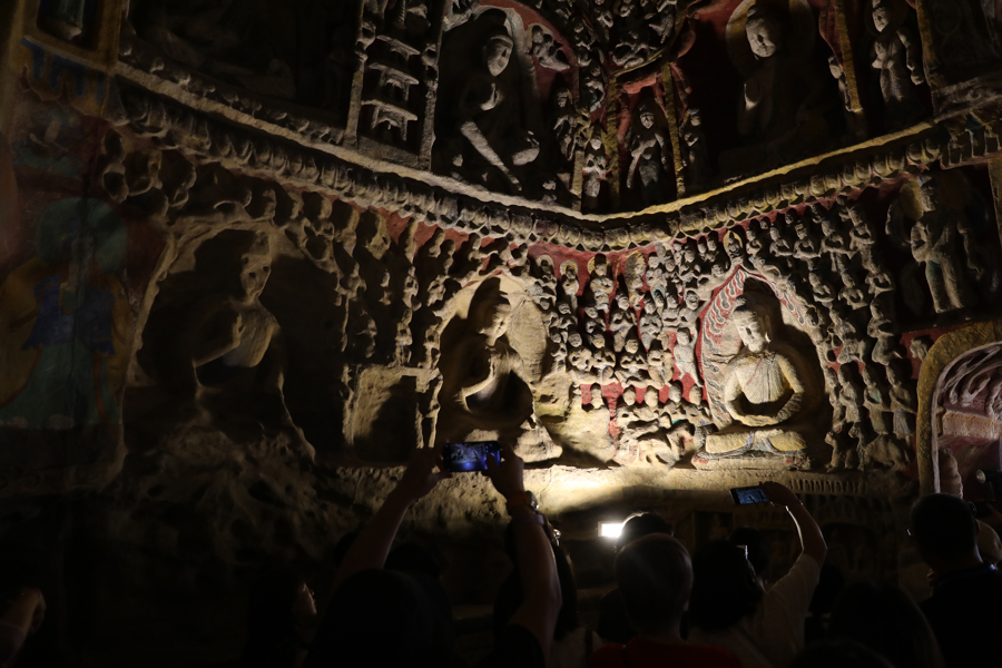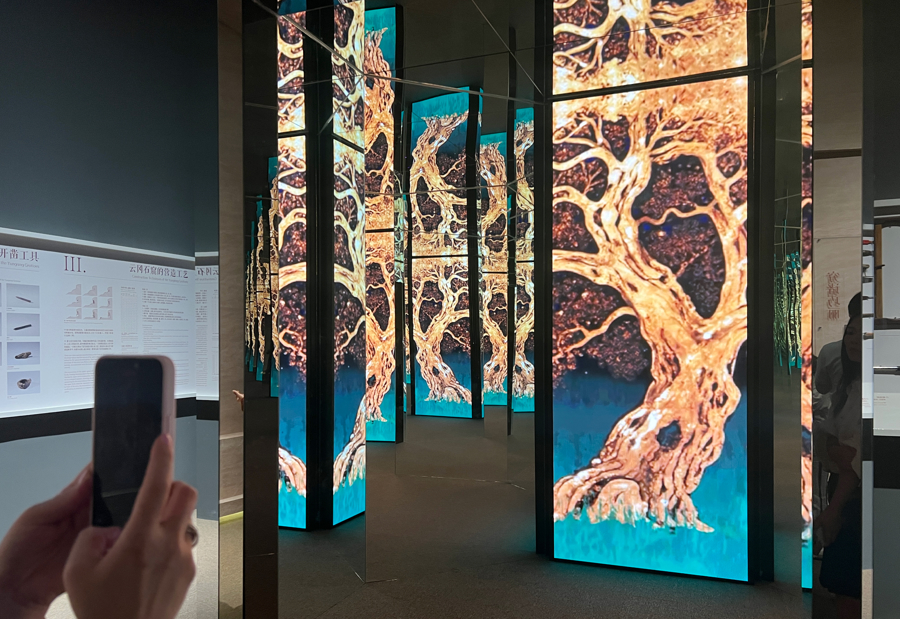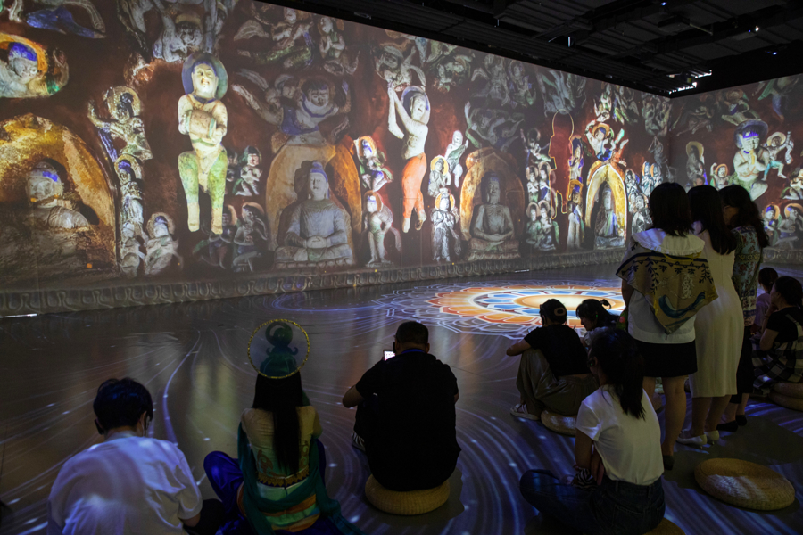 全景光影厅内的“光息”展览单元为观众打造了一场全息云冈石窟光影艺术
